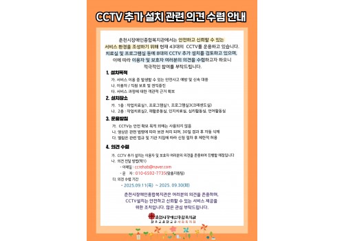 지역사회와 함께 마음을 모아 사랑을 실천하는 춘천시장애인종합복지관입니다.