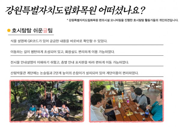 9월 호시탐탐 모니터링 활동은 강원특별자치도립화목원에서 진행하였습니다.