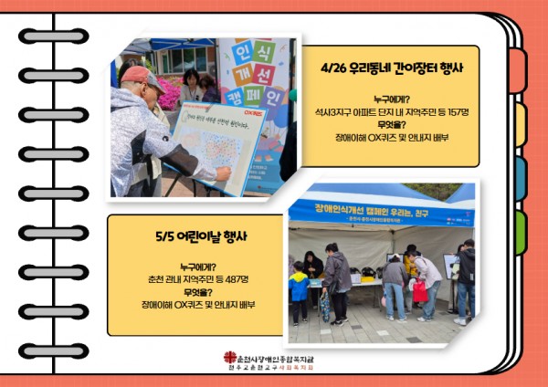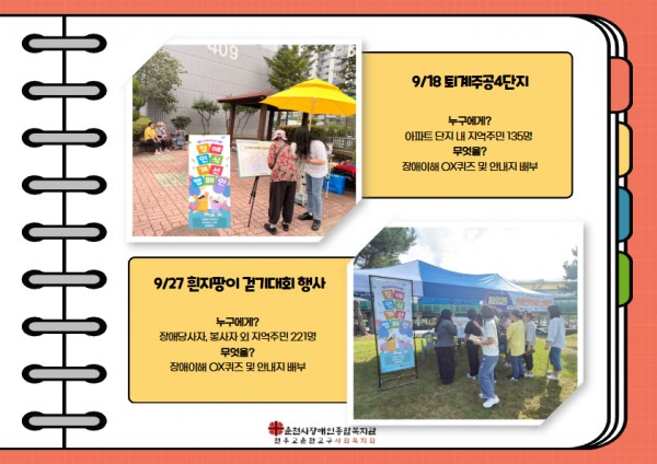 2025년 4월~9월 춘천 지역주민을 대상으로 똑똑한(Talk Talk) 장애인식개선캠페을 진행하였습니다!