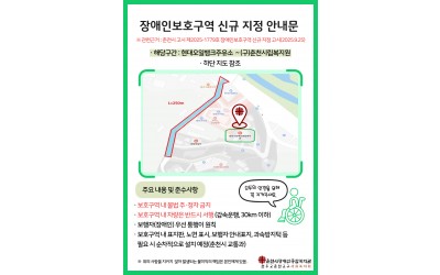 복지관 이용자와 모두의 안전을 위해 장애인보호구역이 신규 지정되었습니다.아래의 내용을 확인해주시고 협조해주시기 바랍니다.※ 관련근거 : 춘천시 고시 제2025-1779호 장애인보호…