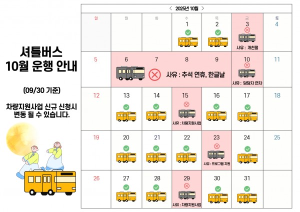 10/10(금) 담당자 연차 10/15(수) 차량지원사업,