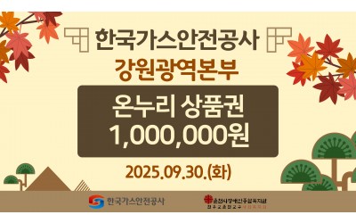 2025년 9월 30일(화), 한국가스안전공사 강원광역본부에서 저희 복지관을 방문해 주시고, 장애인복지의 발전을 위한 따뜻한 격려와 함께 백만원 상당의 온누리 상품권을 후원해 주…