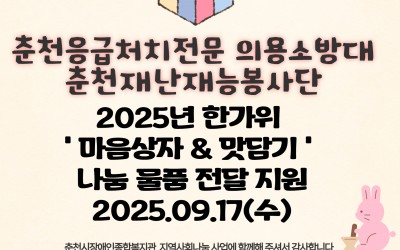 2025년 한가위 ' 마음상자 & 맛담기 ' 나눔 물품 전달 지원한가위를 맞이하여 지난 2025.09.17(수)에 ' 마음상자 & 맛담기…