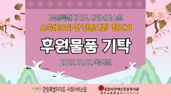 2025년 10월 3일, 강원특별자치도사회서비스원이 ‘으쓱(ESG)한 전통시장 장보기 행사’를 통해 복지관을 방문해주셨습니다.